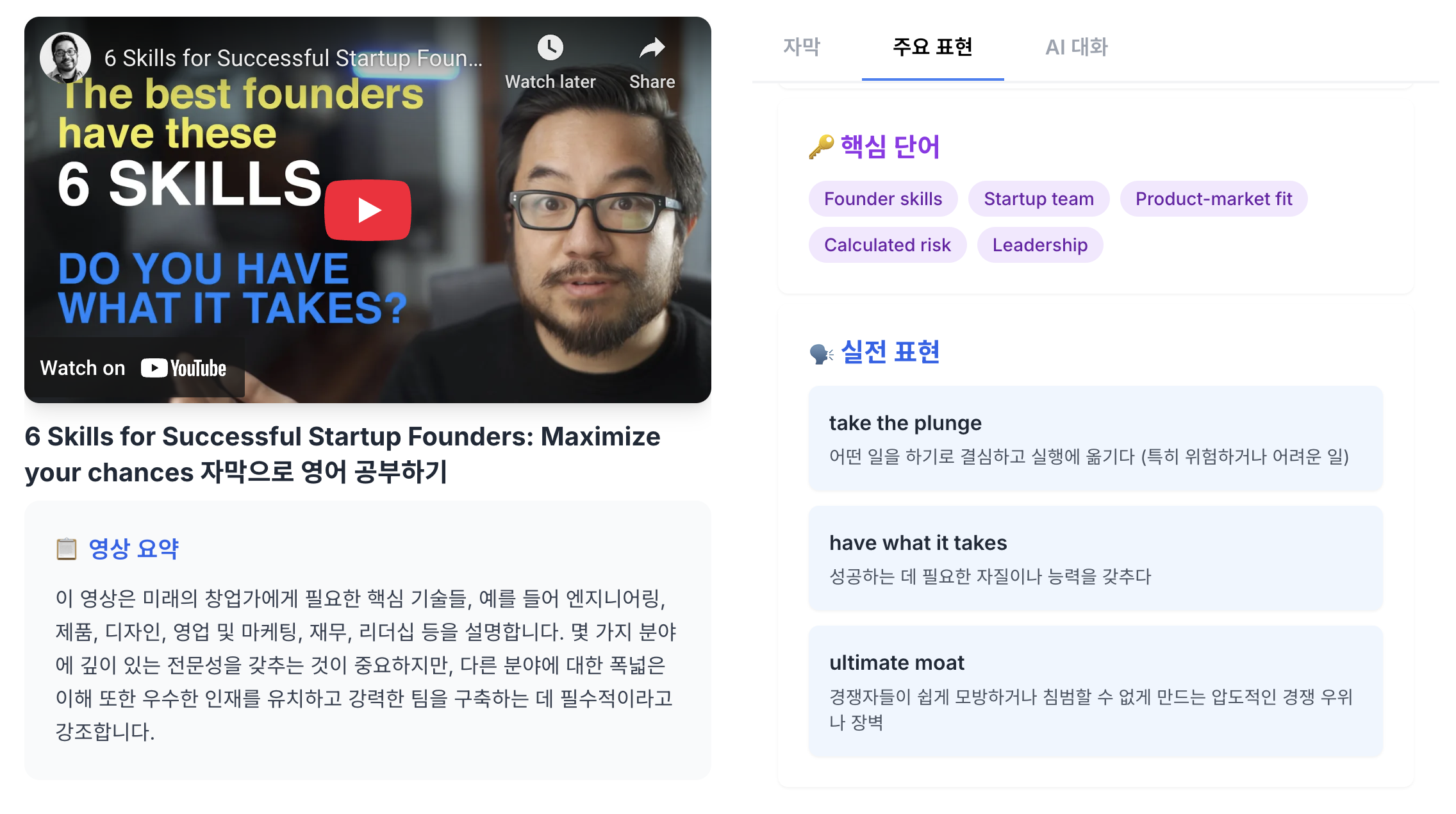이제는 여러분의 관심사와 미래에 직접적으로 도움이 되는 영어를 배워볼 때입니다. 특히 창업이나 비즈니스 분야에 관심이 있다면, 세계적인 창업 전문가의 통찰을 직접 들으며 영어 실력을 키울 수 있는 좋은 기회가 있어요. 오늘은 억만 달러 스타트업인 코인베이스(Coinbase)와 인스타카트(Instacart)의 초기 투자자이자 Initialized Capital의 공동 창업가인 게리 탄(Garry Tan)의 유튜브 채널을 소개해 드리려 합니다. 스태프나 장비 없이 직접 촬영하는 그의 영상은 꾸밈없고 진정성 있는 내용으로 가득해, 실제 비즈니스 현장에서 쓰이는 영어를 접하기에 아주 좋습니다. 오늘 함께 살펴볼 영상은 바로 "6 Skills for Successful Startup Founders: Maximi..